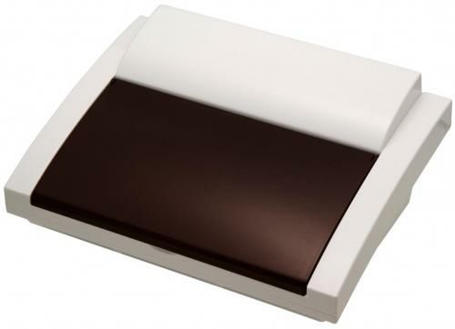 本体開閉カバーは、ブラウンカラーにてサロンデザインとの調和もとれ、開閉時にはランプが消灯しますので目を保護するやさしい設計です。